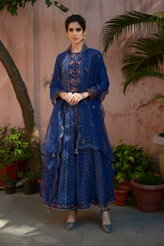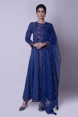 Paneled anarkali with mix embroidery. fit wise: this style has relax fit. This style comes with pant and dupatta.