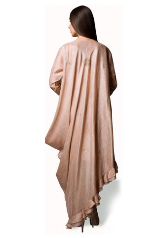 Embroidered Silk Linen high low tunic with frill edging.