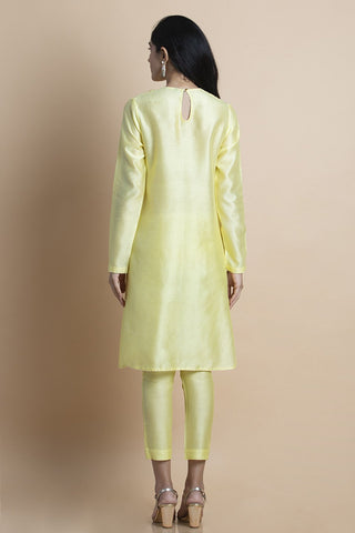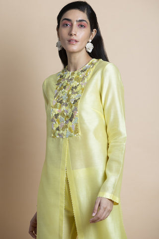 Lime Yellow Hand Embroidered Tunic in Chanderi
