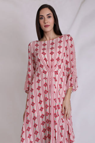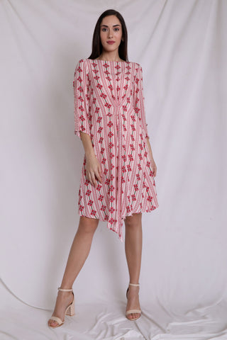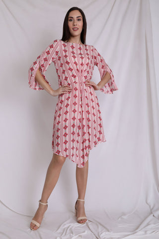 Linear Printed Inverted Pleated Dress