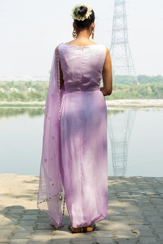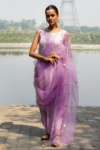 Featuring a mesmerizing saree drape gown curated in georgette fabric and saree palla with pure organza, the yoke is full embroidered with the saree palla.