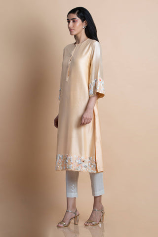 Peach Embroidered Tunic In Chanderi