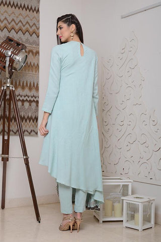 Stunning cowl drape kurta and pencil pants set. Style it with single strap heels and silver chandelier earrings.