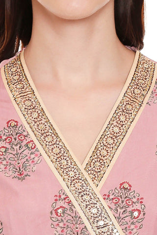 Featuring a printed over lap top with gathers at waist and side tie-up paired with printed sharara.