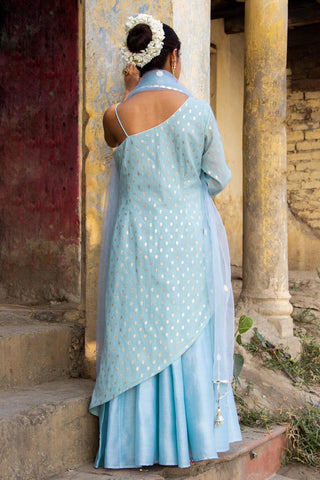 Sky Blue Asymmetric Leather Work Suit with Kalidar Sharara